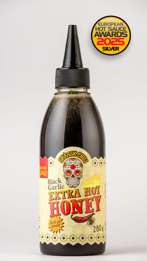Skånsk – Swedish Black Garlic Hot Honey – EXTRA Heat – (Heat Level 8) – 280g